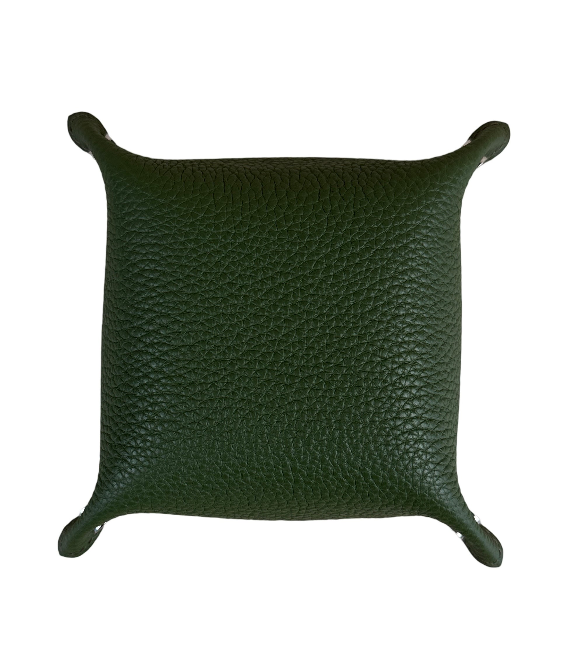 Petit Valet tray is expertly crafted from almond Alran Samoa goatskin leather & olive green natural shrunken calfskin leather, complimented by stainless steel hardware. It makes for a perfect addition to your home decor.